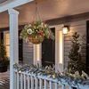 Cesta colgante de Navidad Artificial, flocado con decoraciones mezcladas y luces LED blancas, adorno colgante, decoración de Navidad E7
