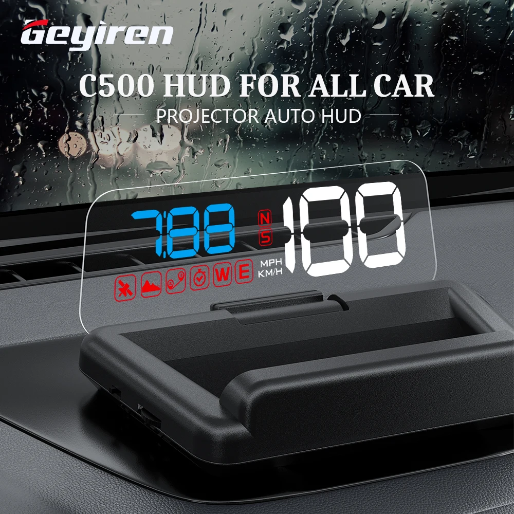 GEYIREN pantalla EOBD C500 para coche, proyector Digital de velocímetro, accesorios para todos los coches, OBD2, GPS, HUD