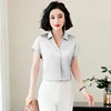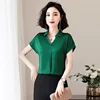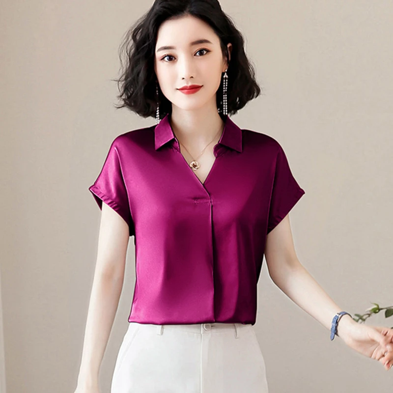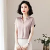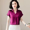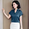 Blusa de seda de estilo coreano para mujer, camisa de manga corta y manga larga para oficina, talla grande