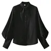 Blusa de manga larga holgada para mujer, camisa con cuello de orejas de conejo, estilo Retro coreano, a la moda, para otoño, 2020