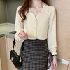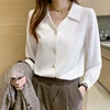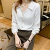 Camisas coreanas para mujer, camisa blanca de seda para mujer, blusas de manga larga para mujer, blusa de seda satinada, blusas elegantes para mujer, Tops XXL