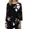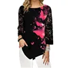 Camisa de manga 3/4 de encaje para mujer, blusa con estampado de mariposa, Tops holgados con cuello redondo a la moda, camisa informal de verano de talla grande 5XL