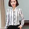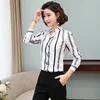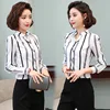 Camisas coreanas de gasa para mujer, blusa a rayas, camisa Floral para mujer, blusas estampadas de manga larga, Tops de talla grande para mujer, camisas con cuello en V