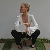 Cryptographic Blusa de punto acanalada para mujer, Top Sexy con manga acampanada, color blanco, elegante