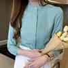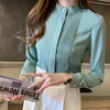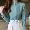 Camisa de oficina de moda coreana para mujer, blusa blanca plisada con cuello levantado, novedad de primavera y verano, 2021