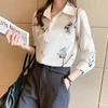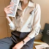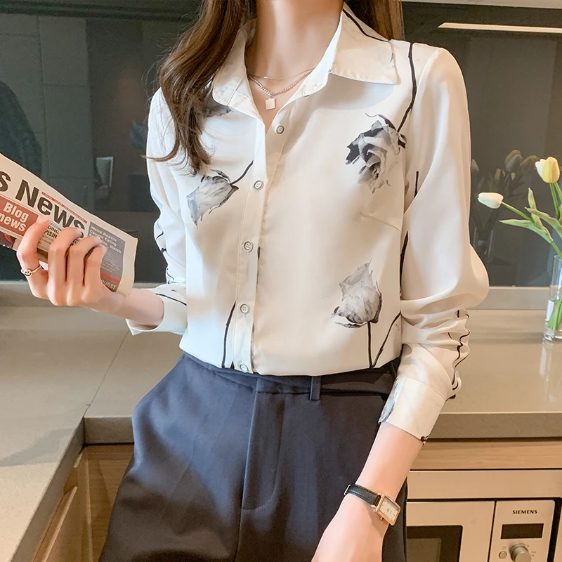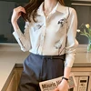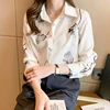 Camisas coreanas de seda para mujer, blusas de satén para mujer, camisa de manga larga, blusa Floral, Tops de moda para mujer, camisa estampada de seda XXL