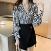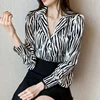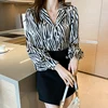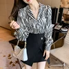 Camisas de gasa con muescas y botones para mujer, Blusa de manga larga con estampado de leopardo, ropa de otoño, 2021