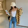 Camisas a cuadros para mujer, Chaqueta de algodón cálida informal, abrigo suelto a cuadros, Harajuku, manga larga, otoño