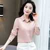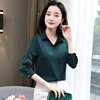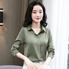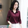 Camisa de seda coreana para mujer, Blusa de manga larga, Top de talla grande para mujer, camisas blancas de satén, camisa básica elegante para mujer, Top 3XL