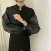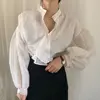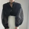 Blusa de retazos transparente para mujer, camisa elegante sedosa que combina con todo, de malla, alta calidad, 2021
