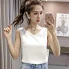 Tops coreanos para mujer, blusas de gasa sin mangas para mujer, Tops con cuello en V de talla grande, Top informal blanco, camisa básica XXL para mujer