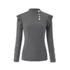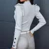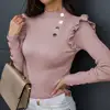 Camisa básica de manga larga para mujer, abrigo tejido con volantes y botones, blusa para otoño e invierno, 2021