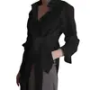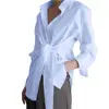 Blusa asimétrica con cuello hacia abajo para mujer, camisa Sexy asimétrica con botones, a la moda