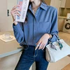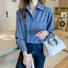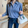 Blusas de satén para mujer, camisas de gasa para mujer, ropa de moda para mujer, Blusa de manga larga para oficina, camisas básicas lisas para mujer 2021