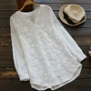 Blusa blanca de algodón para mujer, camisa de manga larga con cuello de pico y encaje bordado Floral, talla grande 5xl