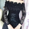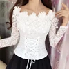 Blusa de manga larga con cuello oblicuo para mujer, camisa Sexy de encaje liso, corta, ajustada, con hombros descubiertos, 2021