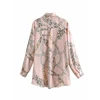 Blusa informal de manga larga para mujer, camisa sencilla de satén con estampado de cadena retro, tops holgados a la moda, S5065