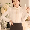 Blusa femenina de manga larga con encaje para primavera y otoño, camisa elegante de color liso con estampado floral para mujer, 812B, 2019