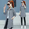 Camisa a cuadros ligera para mujer, tops de manga larga para primavera y otoño, blusa larga holgada de Han Fan, 2020