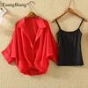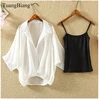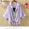 Conjunto de dos piezas para mujer, camisas de gasa de talla grande, blusa informal holgada de media manga con cuello en V para mujer, Tops geniales sexys para otoño 2021