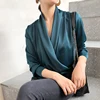 Camisas de manga larga con cuello en V para mujer, camisa Sexy Lisa para mujer, blusa holgada para oficina, otoño y primavera, 2019