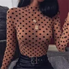 Blusas de malla con estampado de lunares para mujer, camisas de manga larga ajustadas, ropa informal