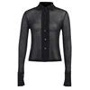 InstaHot camisas de malla de manga larga para mujer, blusa informal de color liso con cuello vuelto transparente, ropa de calle de verano para oficina
