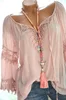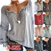 Blusa holgada de manga larga con cuello en V para verano, camisa informal de encaje para mujer, talla grande, 2021