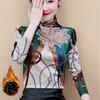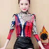 Camisa de terciopelo de manga larga para mujer, blusa ajustada de cuello alto con estampado, 121B, Primavera, 2020