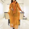 2021 nuevo arco corbata vestido sensual transparente de gran tamaño naranja malla Organza ver a través de, Vestidos africanos de las mujeres Casual vestido largo