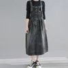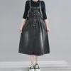 Vestido vaquero largo de talla grande para mujer, vaquero con tirantes negros, moda coreana del Reino Unido, para fiesta y Club