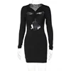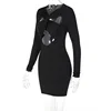 Vestido corto de manga larga para otoño e invierno, negro liso, con agujeros, vendas para el busto, con cordón, ropa de calle sexi para fiesta, 2021