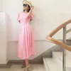 Vestido de fiesta de Color liso para mujer, prenda elegante con cuello redondo, dulce, temperamento