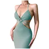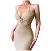 Vestidos de Fiesta largos sin mangas para mujer, Vestidos sexys elegantes con cuello en V, Color liso, para verano