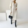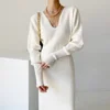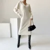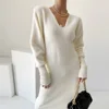 Vestido de Invierno para mujer, suéter de punto suave y grueso, elegante, manga larga, cuello en U, 2021