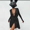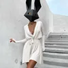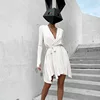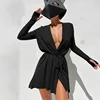 Vestidos Elegantes para mujer, minivestido Sexy de manga larga con cuello en V profundo para fiesta de noche, vestidos de línea a de color puro