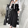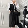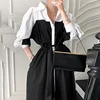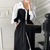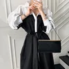 Vestido de verano de estilo coreano con manga abombada, elegante, con solapa francesa, diseño de costuras en contraste y cordones en la cintura, 2021