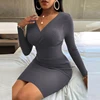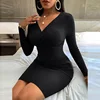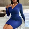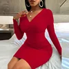 Vestido corto de manga larga ajustado para primavera y otoño, minivestido Sexy para mujer, ajustado, ajustado, ceñido al cuerpo, con escote triangular, ceñido a la cadera