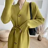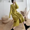 Karrram Vestido largo de punto con cinturón para mujer, prenda informal de manga larga con un solo pecho, elegante, para Otoño e Invierno