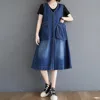 Vestido vaquero largo sin mangas, talla grande, informal, para verano, 2022