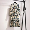NEEW Vestido largo con cintura elástica para mujer, traje Multicolor con estampado de flores y cuello de pico, acampanado, otoño 2019