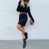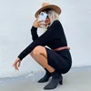 Vestido de manga larga holgado para mujer, jersey de cuello alto de Color sólido, cálido, Otoño e Invierno