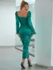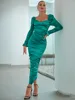 Srubí vestido de satén Midi fruncido en el pecho, manga larga, cintura alta, plisado, ajustado, para fiesta, Invierno