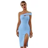 Vestido Bandage blanco y azul para mujer, vestido Sexy elegante negro con un hombro sin tirantes, vestido de fiesta de pasarela para celebridades 2021