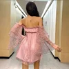 Vestido de princesa de gasa sin tirantes para mujer, minivestido de hada brillante con lentejuelas, novedad de 2021