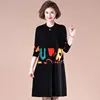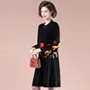 Vestido de punto para madre, ropa de otoño para mujer de 40 años y 50 de ancho, falda estampada de estilo occidental para mediana edad y ancianos, 2021