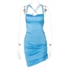 Minivestido de satén con tirantes para mujer, vestido ajustado con espalda descubierta y encaje fruncido, Sexy, para fiesta y Club de Navidad, 2020