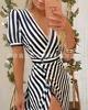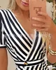 Vestido a rayas con escote en V y abertura alta