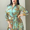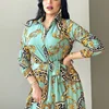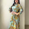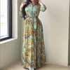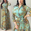 Vestido musulmán de lujo Para Mujer, Vestidos Elegantes Para Mujer, Maxi, verde, estampado, cuello plegable, manga larga, Para año nuevo