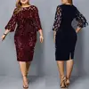 Vestido de noche de gasa liso con lentejuelas para mujer, vestido de noche transparente con cuello redondo, de talla grande